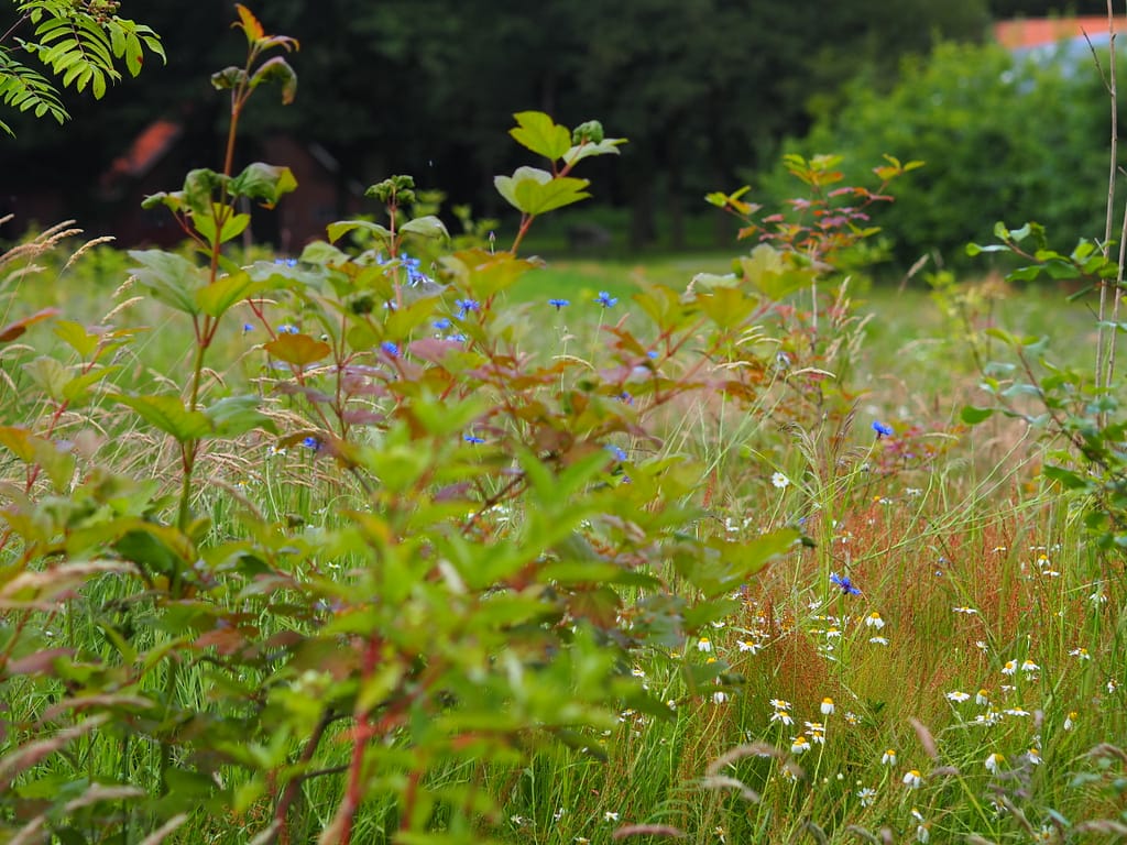 Ruim twee jaar geleden vervingen we het zand in onze paardenbak door bosgrond en plantten we er boompjes. En nu is het terrein veranderd in een oerwoud van kruidige grassen en struikgewas. Er buurten veel meer vogeltjes dan voorheen. Ook de putter laat zich geregeld zien en horen. In deze natuurlijke metamorfose zie ik al iets van mijn idyllisch kampeerplaatje. Een plekje waar mensen kunnen overnachten na een lange wandeling of fietstocht. En waar alleen de grasmaaier af en toe de paden en de slaapplekken maait.